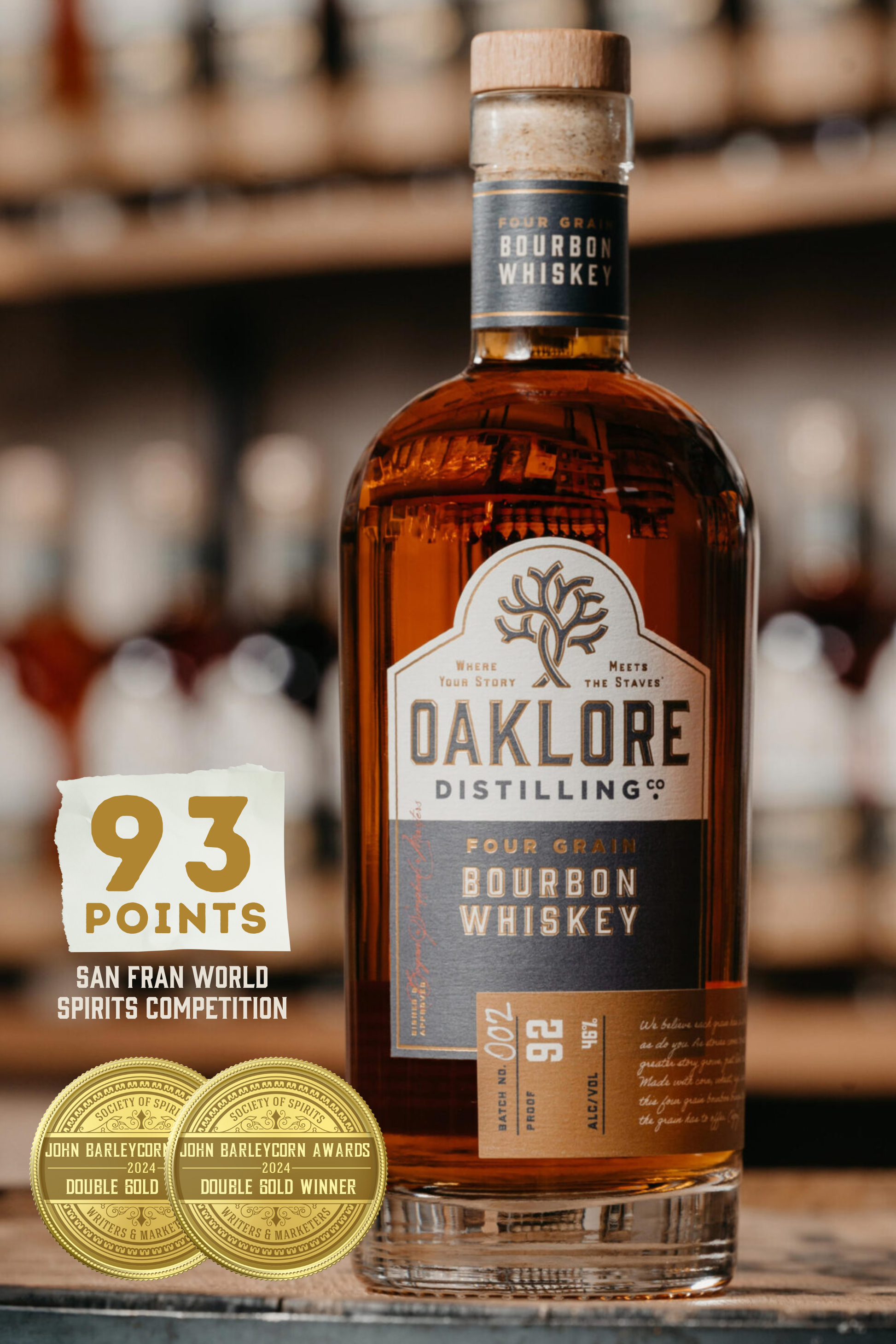 Our flagship spirit embodies the bold, savory character that defines Oaklore. This unique four-grain bourbon brings together wheat, rye, corn, and barley, all aged to perfection for 4-6 years. It’s a testament to our commitment to crafting exceptional spirits.